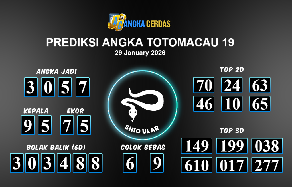 Prediksi Togel TOTOMACAU 19 untuk hari ini Kamis 29 Januari 2026,adalah salah