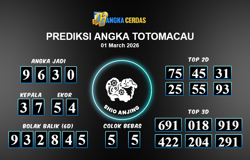 Prediksi Togel TOTOMACAU untuk hari ini Minggu, 01 Maret 2026, adalah salah