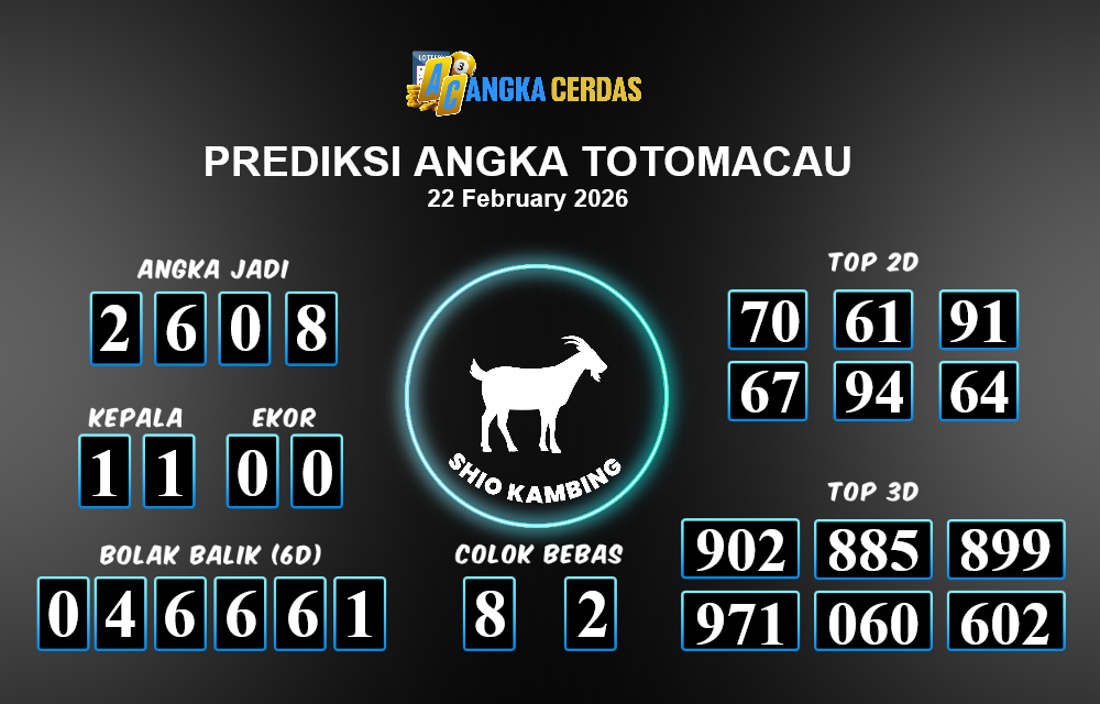 Prediksi Togel TOTOMACAU untuk hari ini Minggu, 22 Februari 2026, adalah salah