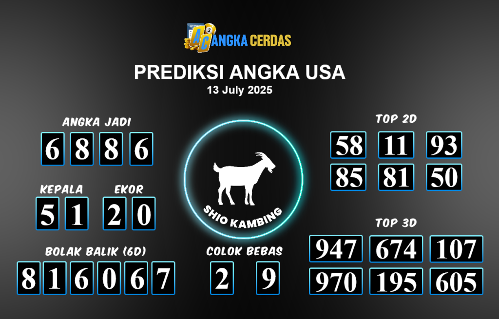 Prediksi Togel USA untuk hari ini Minggu, 13 Juli 2025, adalah salah