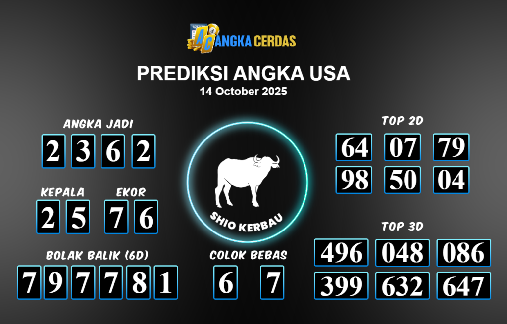 Prediksi Togel USA untuk hari ini Selasa 14 Oktober 2025, adalah salah