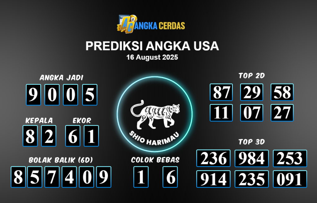 Prediksi Togel USA untuk hari ini Sabtu 16 Agustus 2025, adalah salah
