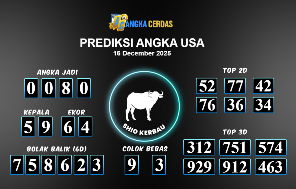 Prediksi Togel USA untuk hari ini Selasa 16 Desember November 2025, adalah salah