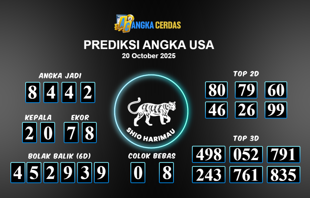 Prediksi Togel USAuntuk hari ini Senin 20 Oktober 2025, adalah salah