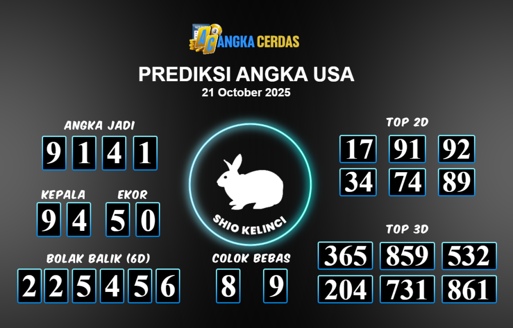 Prediksi USA Togel untuk hari ini Selasa 21 Oktober 2025, adalah salah