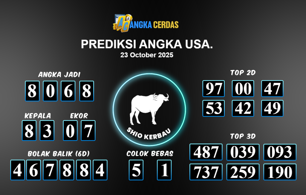 Prediksi Togel USA untuk hari ini Kamis 23 Oktober 2025, adalah salah
