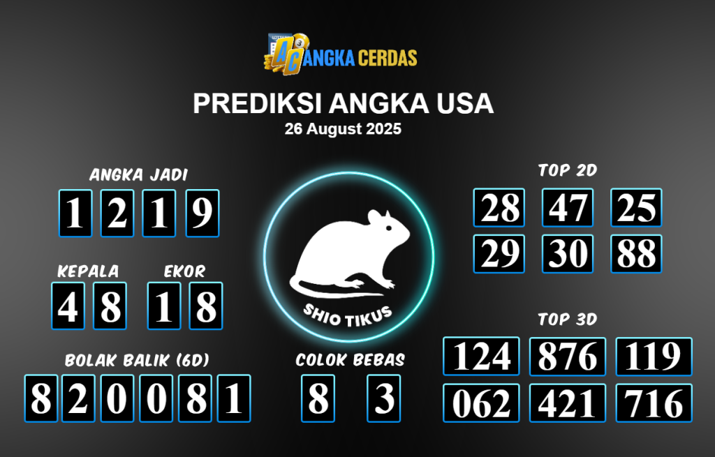 Prediksi Togel USA untuk hari ini Selasa 26 Agustus 2025, adalah salah