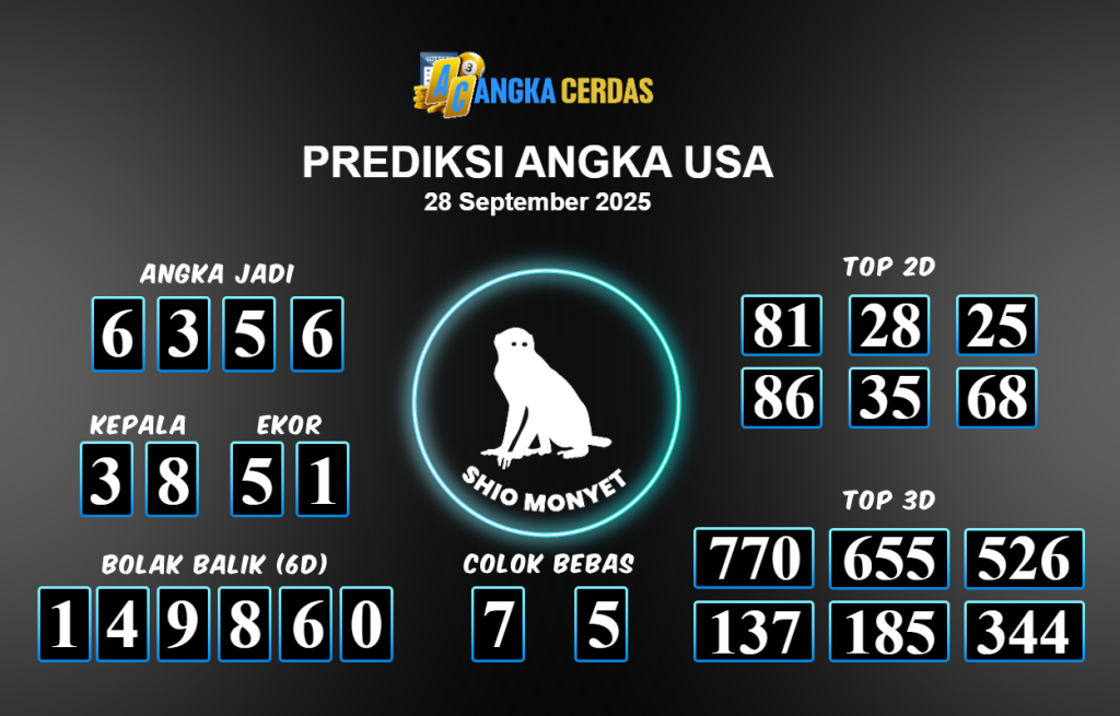 Prediksi Togel USA untuk hari ini Minggu 28 September 2025, adalah salah