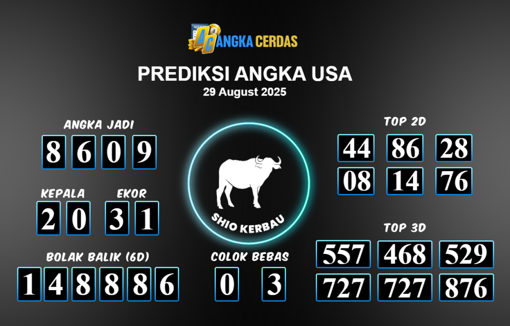 Prediksi Togel USA untuk hari ini Jumat 29 Agustus 2025, adalah salah