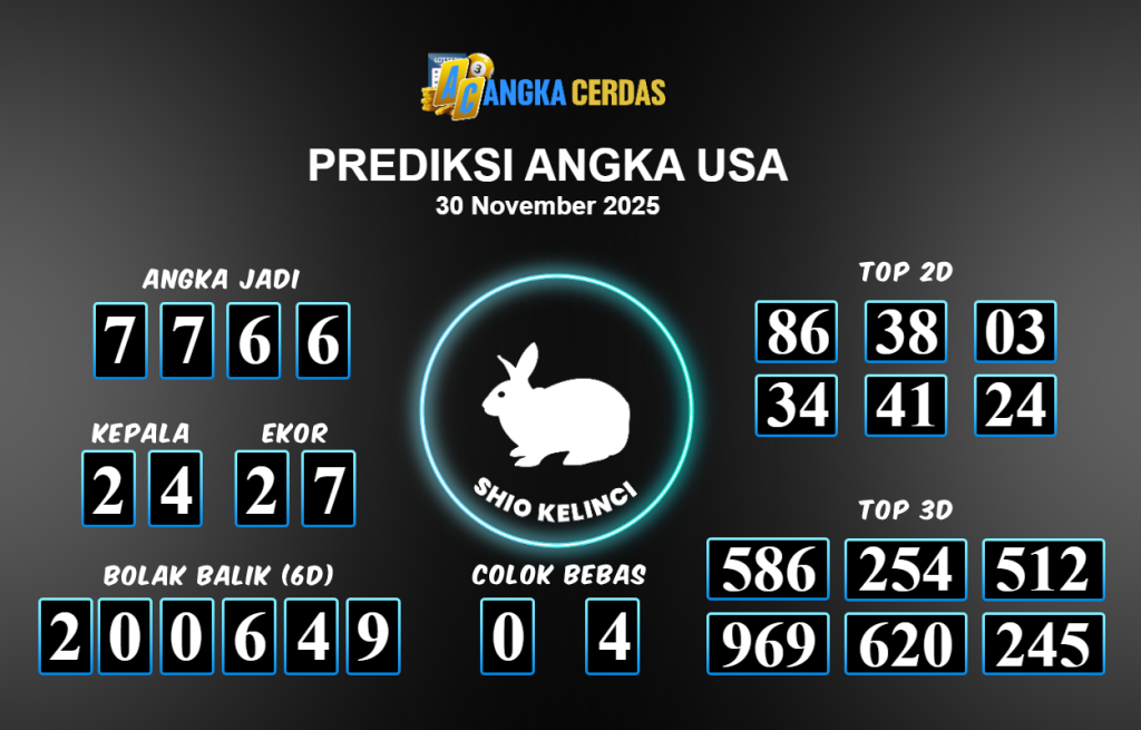 Prediksi Togel USA untuk hari ini Minggu 30 November 2025, adalah salah