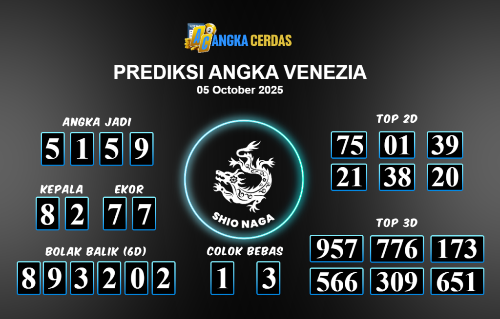 Angka Cerdas : Bocoran Prediksi Togel VENEZIA Tanggal 05 Oktober 2025