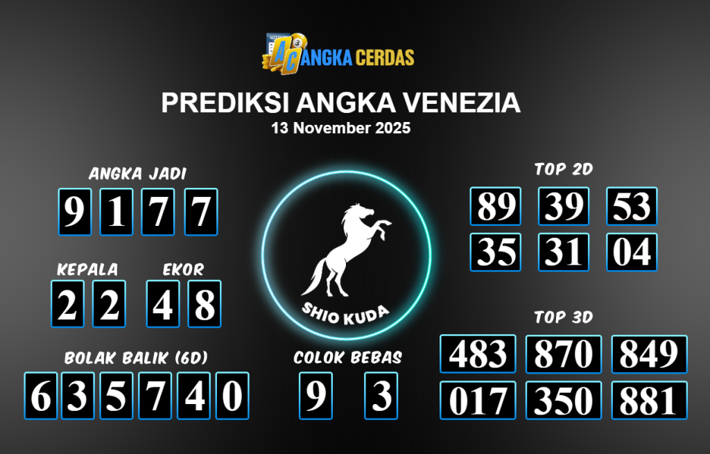 Prediksi Togel VENEZIA untuk hari ini Kamis 13 November 2025, adalah salah