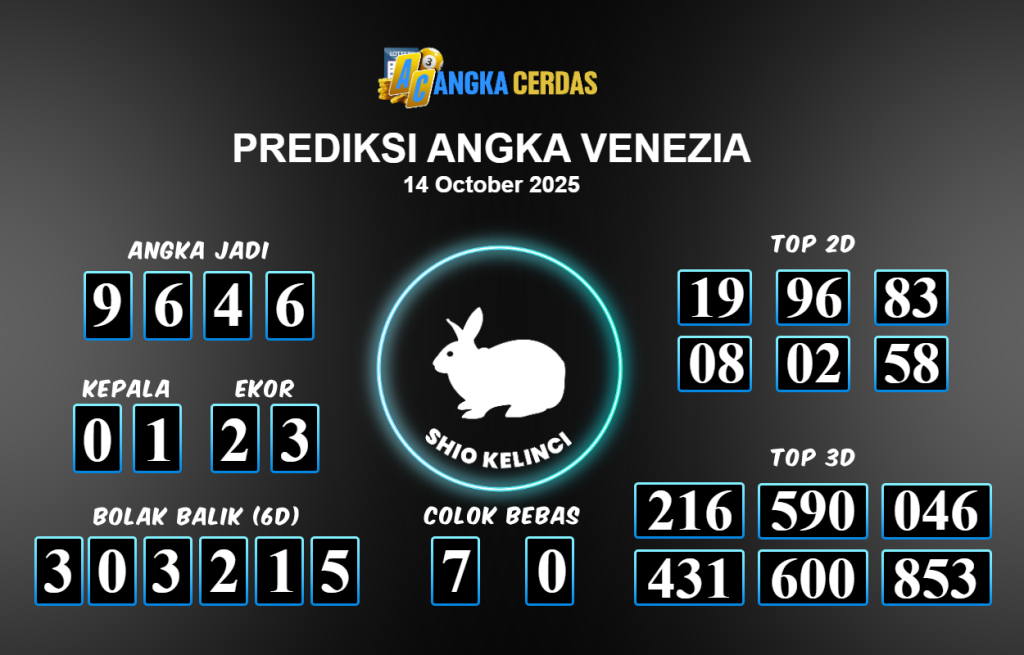 Prediksi Togel VENEZIA untuk hari ini Selasa 14 Oktober 2025, adalah salah