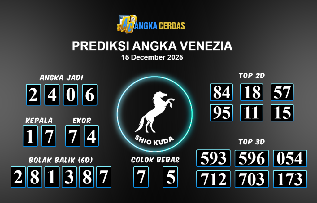 Prediksi Togel VENEZIA untuk hari ini Senin 15 Desember November 2025, adalah salah