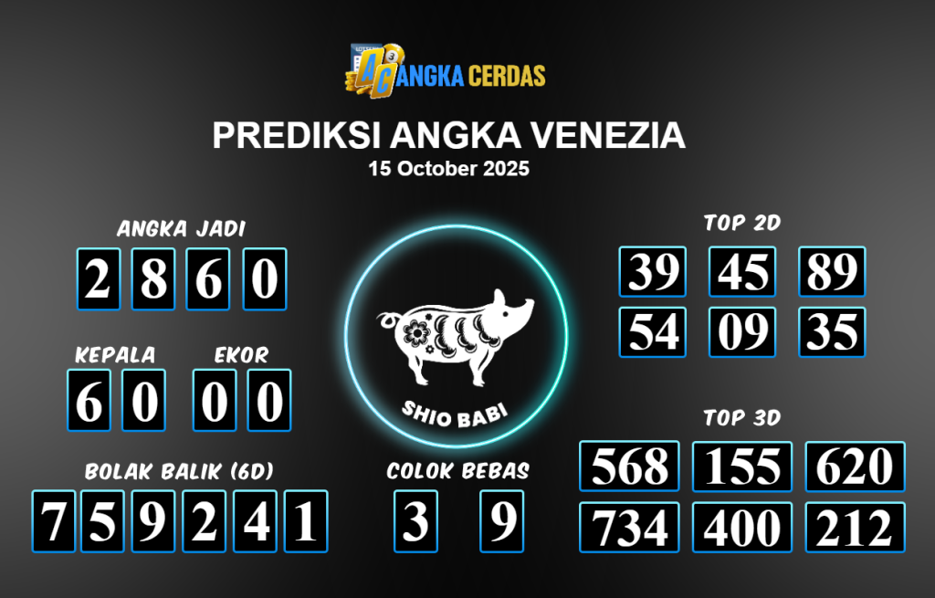 Prediksi Togel VENEZIA untuk hari ini Rabu 15 Oktober 2025, adalah salah