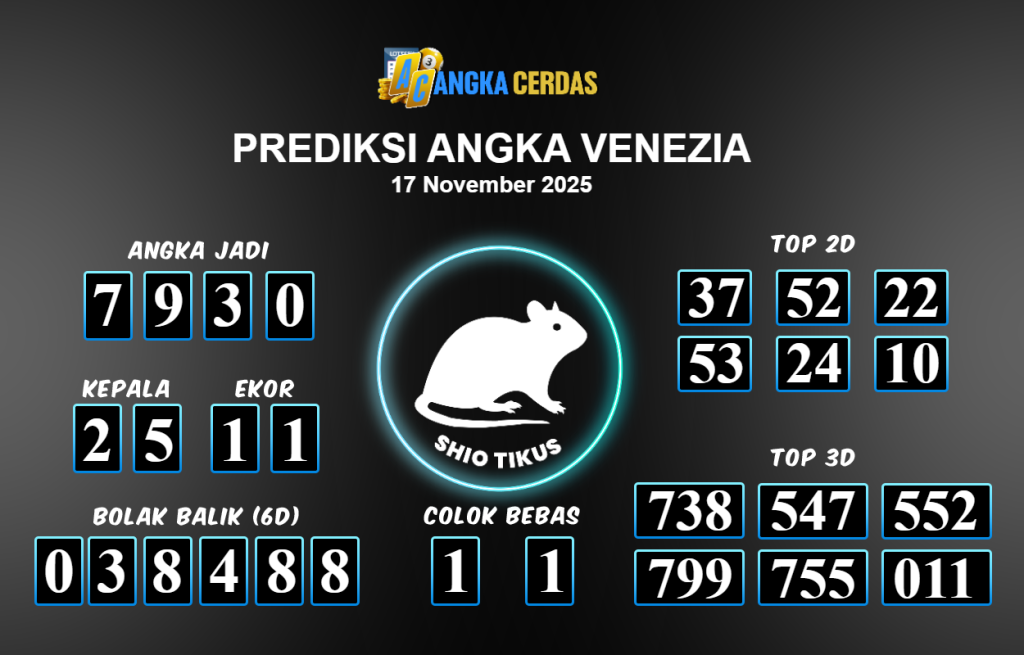 Angka Cerdas : Bocoran Prediksi Togel VENEZIA Tanggal 17 November 2025