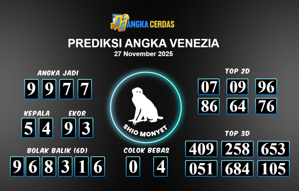 Prediksi Togel VENEZIA untuk hari ini Kamis 27 November 2025, adalah salah