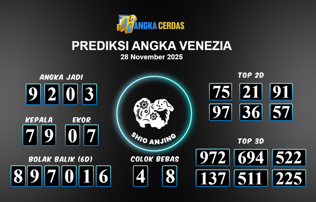 Prediksi Togel VENEZIA untuk hari ini Jumat 28 November 2025, adalah salah