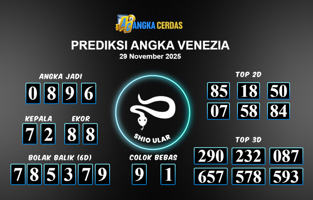Prediksi Togel VENEZIA untuk hari ini Sabtu 29 November 2025, adalah salah