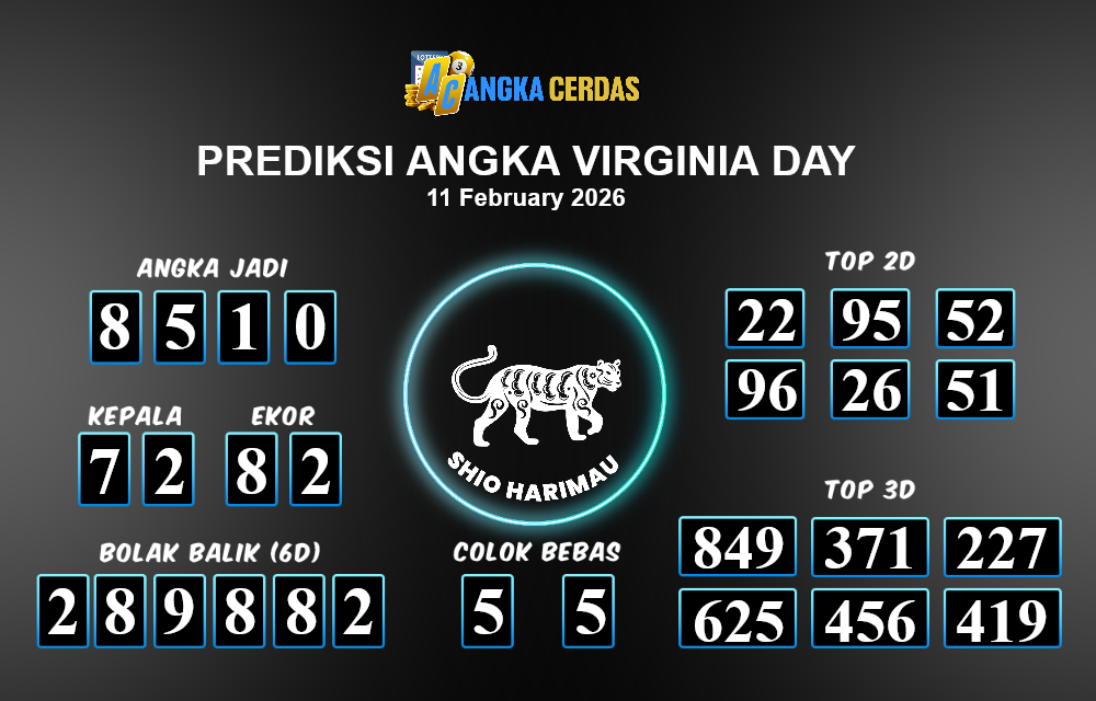 Prediksi Togel VIRGINIA DAY untuk hari ini Rabu, 11 Februari 2026, adalah salah