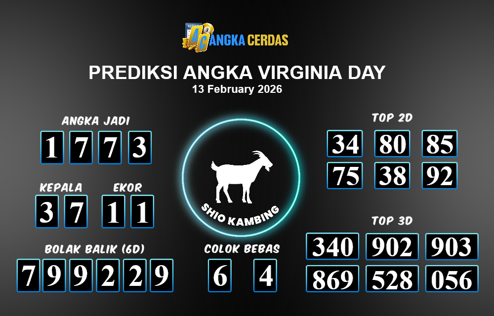 Prediksi Togel VIRGINIA DAY untuk hari ini Jumat, 13 Februari 2026, adalah salah