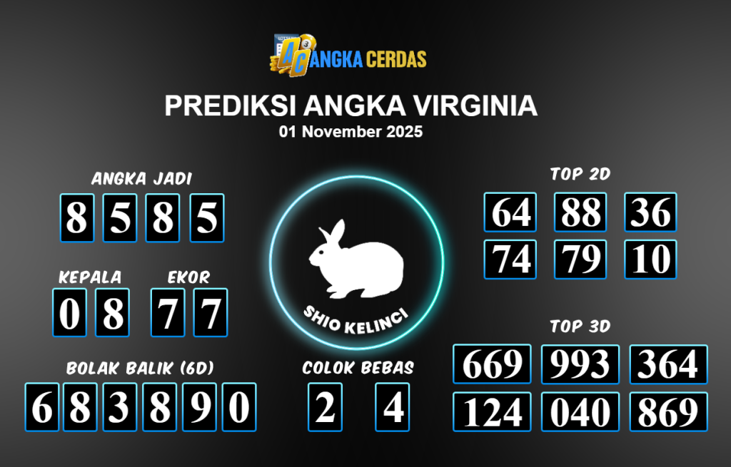 Prediksi Togel VIRGINIA untuk hari ini Sabtu 01 November 2025, adalah salah