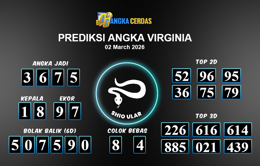 Prediksi Togel VIRGINIA untuk hari ini Senin, 02 Maret 2026, adalah salah