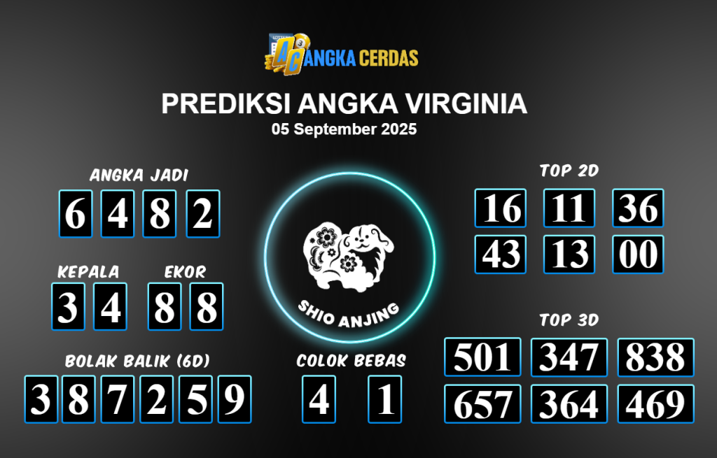 Prediksi Togel VIRGINIA untuk hari ini Jumat 05 September 2025, adalah salah