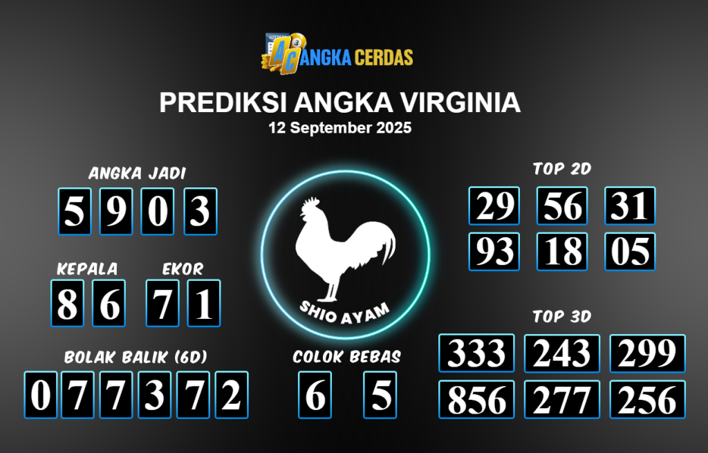 Prediksi Togel VIRGINIA untuk hari ini Jumat 12 September 2025, adalah salah