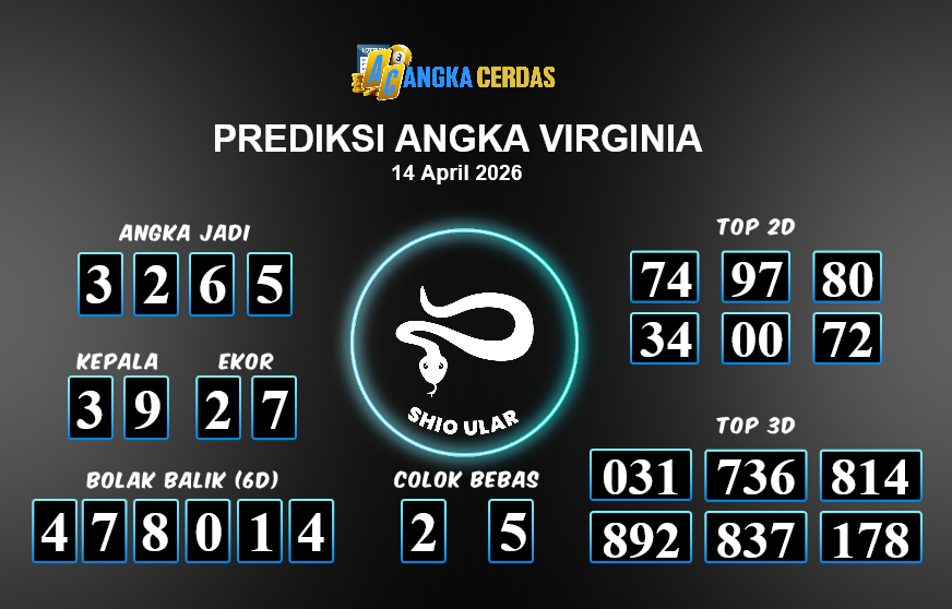 Prediksi Togel VIRGINIA untuk hari ini Selasa, 14 April 2026, adalah salah