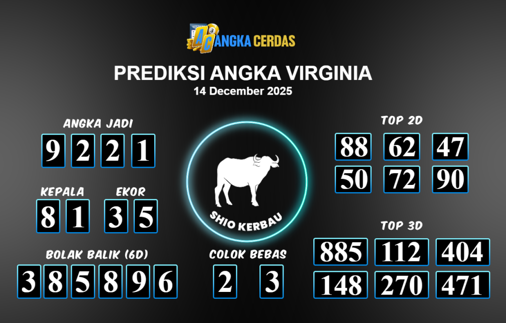Prediksi Togel VIRGINIA untuk hari ini Minggu 14 Desember November 2025, adalah salah