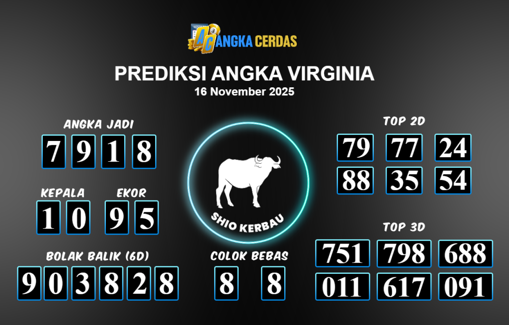 Prediksi Togel VIRGINIA untuk hari ini Minggu 16 November 2025, adalah salah