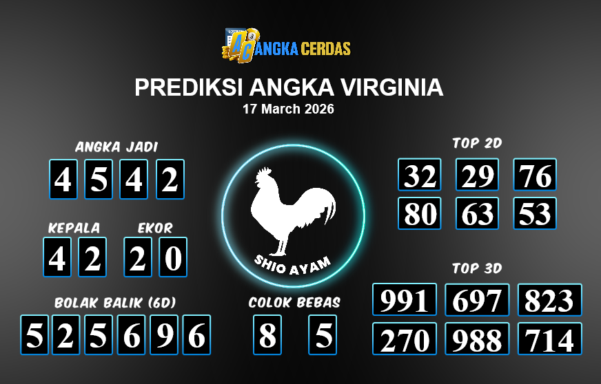 Prediksi Togel VIRGINIA untuk hari ini Selasa, 17 Maret 2026, adalah salah
