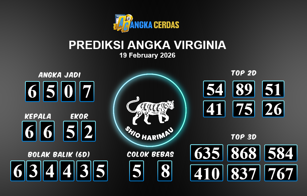 Prediksi Togel VIRGINIA untuk hari ini Kamis, 19 Februari 2026, adalah salah