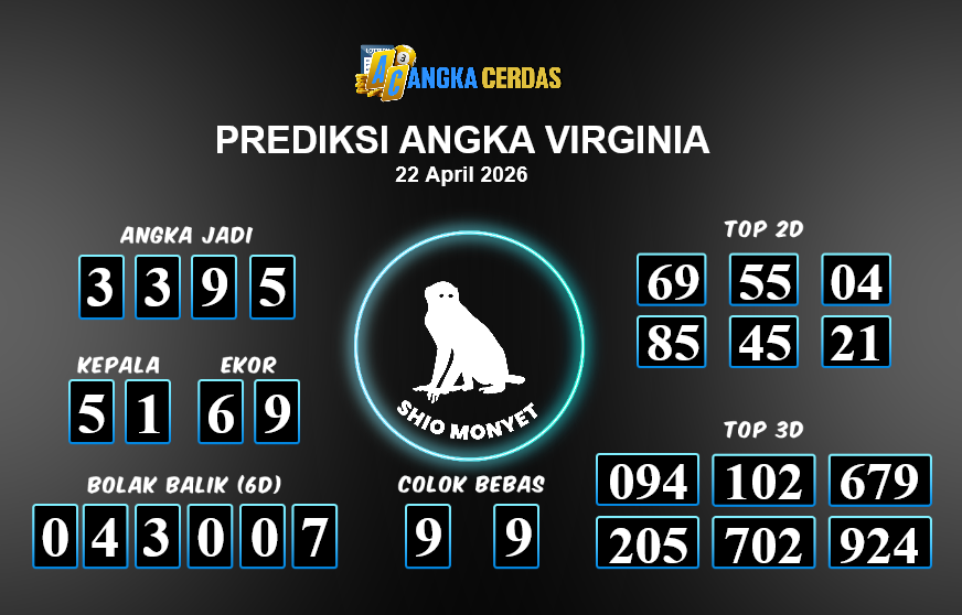 Prediksi Togel VIRGINIA untuk hari ini Rabu, 22 April 2026, adalah salahsatu jenis togel yang memiliki banyak penggemar.Ini terutama ditujukanbagi Anda yang menyukai 4d/3d/2d. Prediksi Angka Cerdas yang kamisediakan,bisa