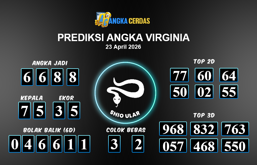 Prediksi Togel VIRGINIA untuk hari ini Kamis, 23 April 2026, adalah salahsatu jenis togel yang memiliki banyak penggemar.Ini terutama ditujukanbagi Anda yang menyukai 4d/3d/2d. Prediksi Angka Cerdas yang kamisediakan,bisa