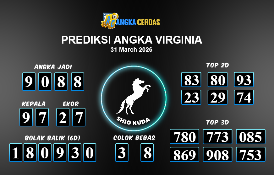 Prediksi Togel VIRGINIA untuk hari ini Selasa, 31 Maret 2026, adalah salah