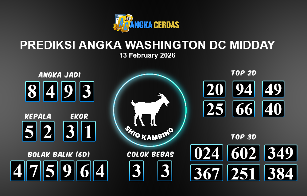 Angka Cerdas : Bocoran Prediksi Togel WASHINGTON DC MIDDAY Tanggal 13 FEBRUARI 2026
