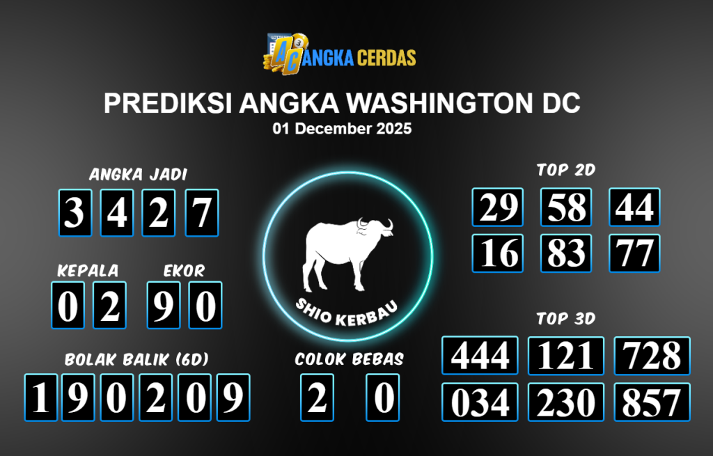 Prediksi Togel WASHINGTON DC untuk hari ini Senin 1 Desember November 2025, adalah salah