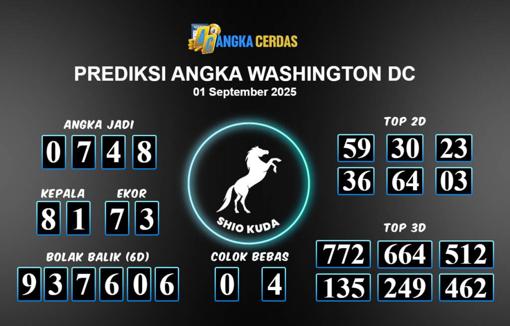 Prediksi Togel WASHINGTON DC untuk hari ini Senin 01 September 2025, adalah salah