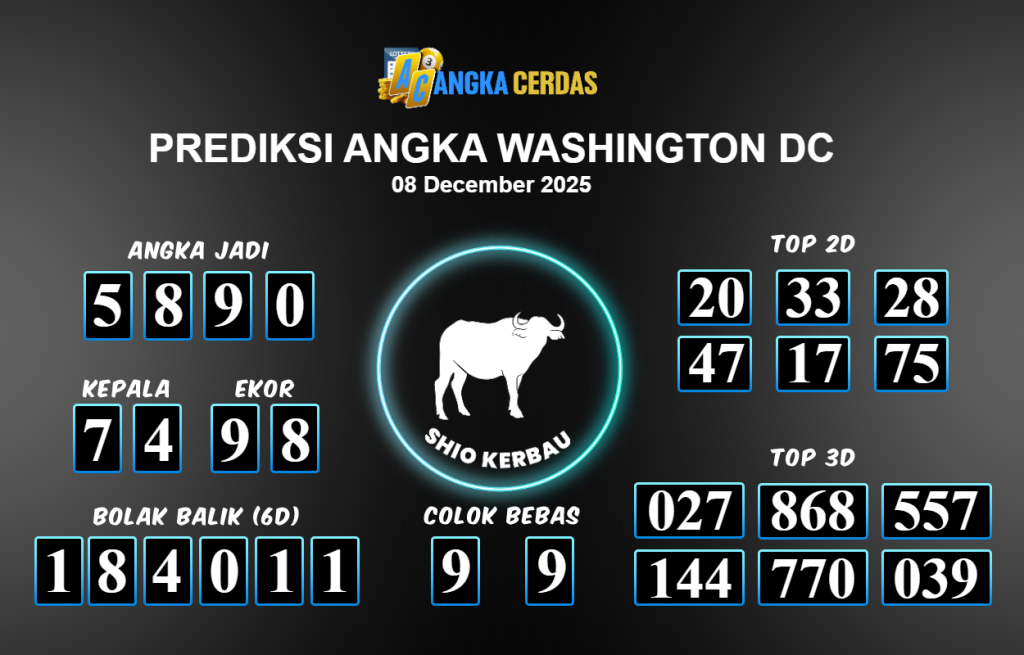 Prediksi Togel WASHINGTON DC untuk hari ini Senin 08 Desember November 2025, adalah salah