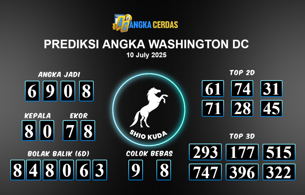 Prediksi Togel WASHINGTON DC untuk hari ini Kamis, 10 Juli 2025, adalah salah