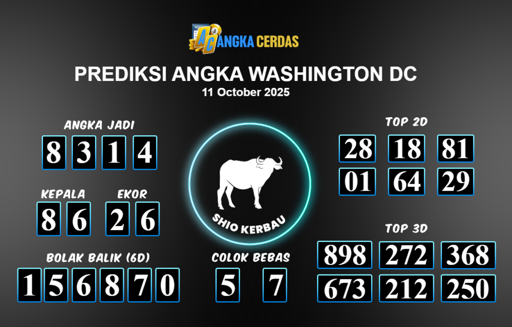 Prediksi Togel WASHINGTON DC untuk hari ini Sabtu 11 Oktober 2025, adalah salah