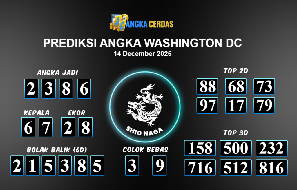 Prediksi Togel WASHINGTON DC untuk hari ini Minggu 14 Desember November 2025, adalah salah