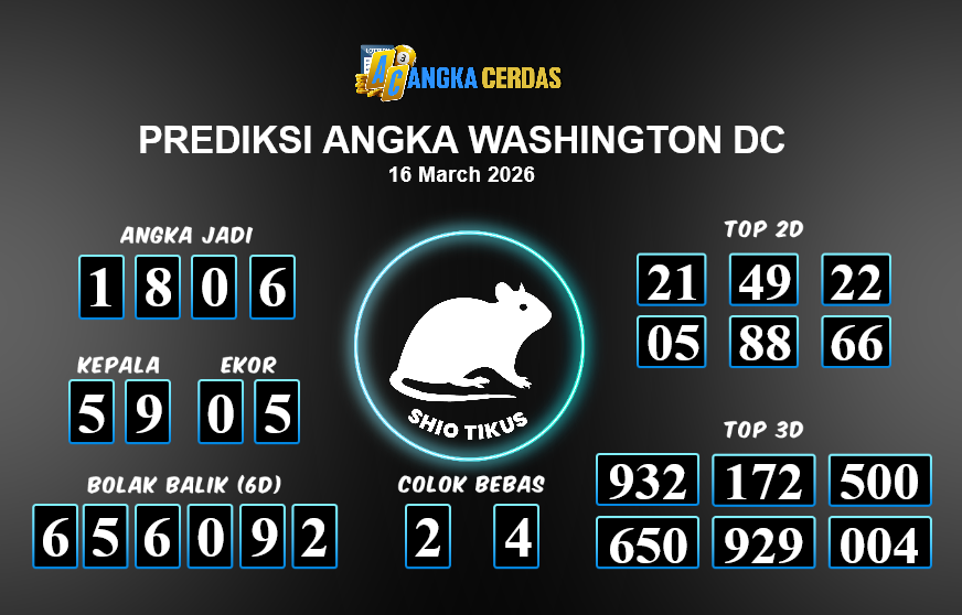 Prediksi Togel WASHINGTON DC untuk hari ini Minggu, 15 Maret 2026, adalah salah