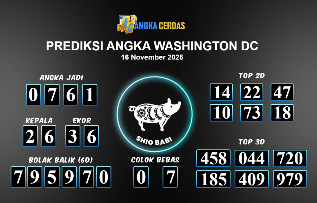 Prediksi Togel WASHINGTON DC untuk hari ini Minggu 16 November 2025, adalah salah