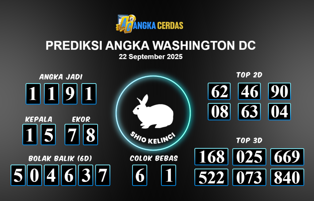 Prediksi Togel WASHINGTON DC untuk hari ini Senin 22 September 2025, adalah salah
