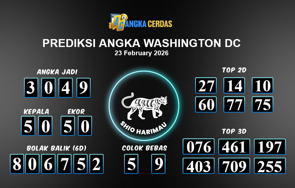Prediksi Togel WASHINGTON DC untuk hari ini Senin, 23 Februari 2026, adalah salah