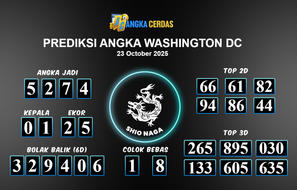 Prediksi Togel WASHINGTON DC untuk hari ini Kamis 23 Oktober 2025, adalah salah