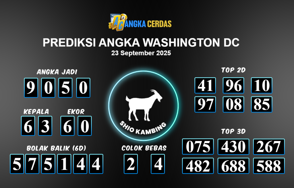 Prediksi Togel WASHINGTON DC untuk hari ini Selasa 23 September 2025, adalah salah